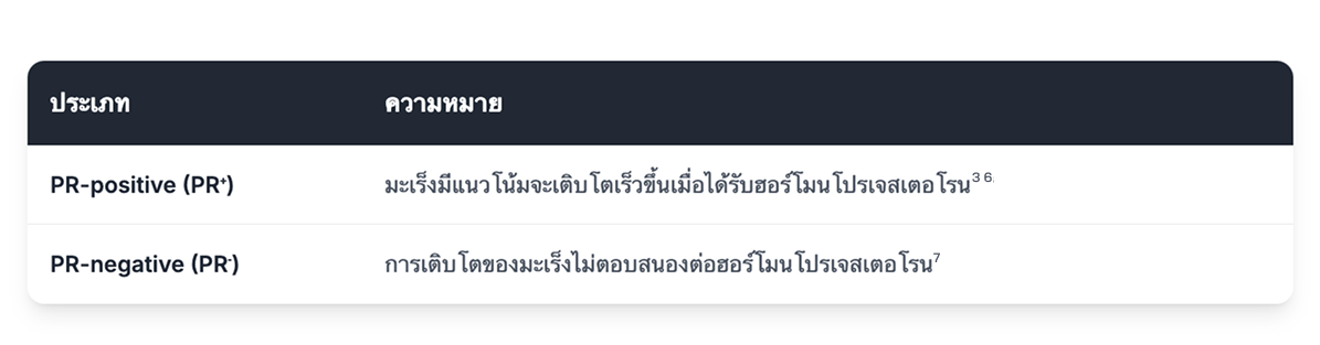 • ตัวรับฮอร์โมนโปรเจสเตอโรน (Progesterone Receptor หรือ PR)