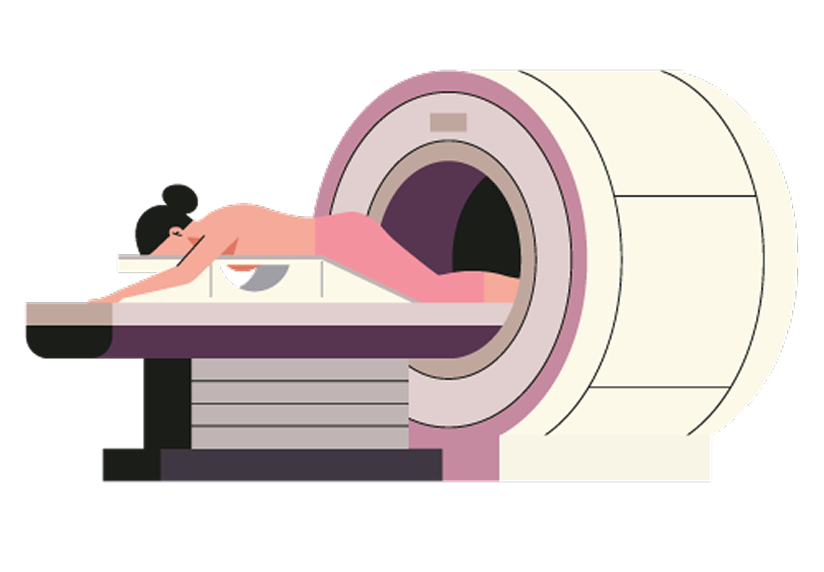 4. อยู่ในเครื่อง 30–45 นาที โดยต้องนอนนิ่ง และอาจต้องกลั้นหายใจเป็นบางจังหวะ