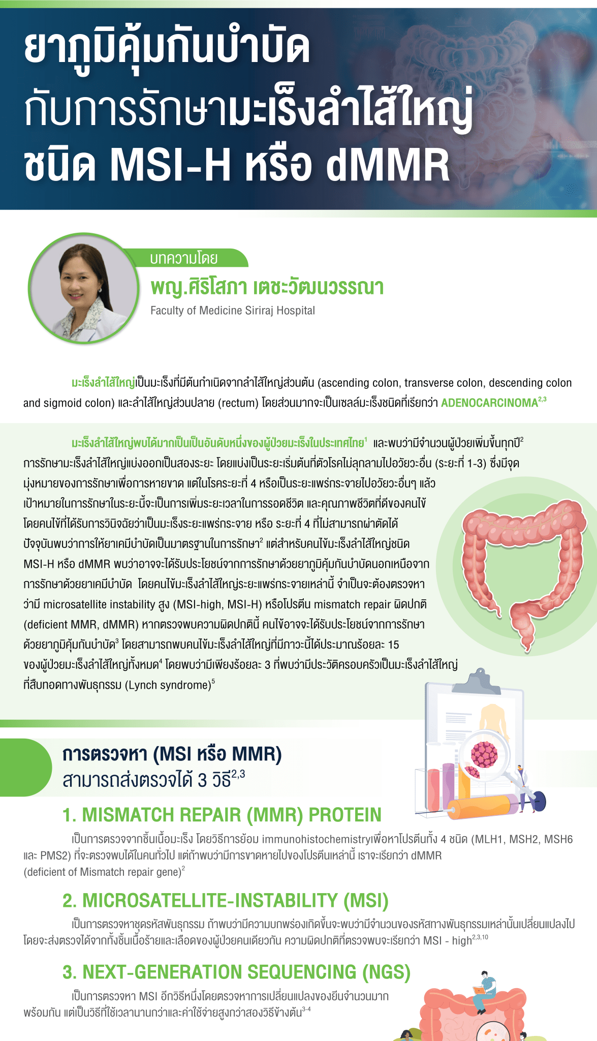 ยาภูมิคุ้มกันบำบัดกับการรักษามะเร็งลำไส้ใหญ่ ชนิด MSI-H หรือ dMMR
